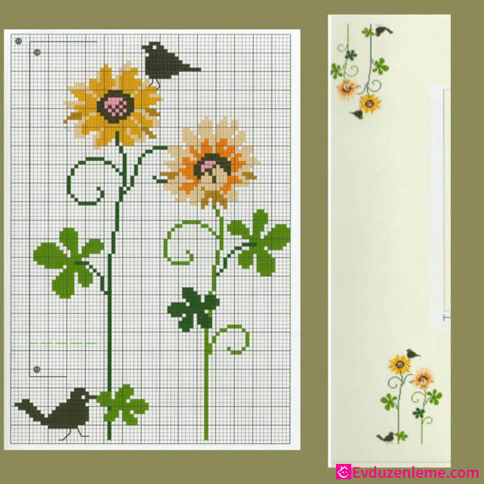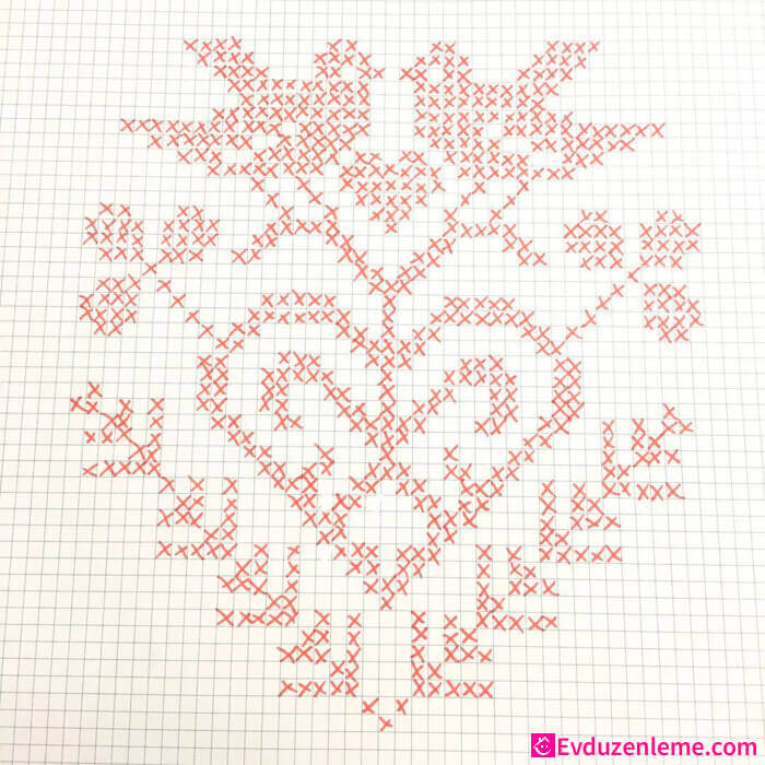 Yastık kılıflarınızda farklılık olmasını istiyorsanız bu vazo içindeki çiçek motifleri tam size göre. Bu modeli işlemek biraz ustalık gerektirse de altından başarıyla kalkacağınızdan eminiz. Uygun renkte ipleri alarak bu deseni işlemeye başlamak için neden hala bekliyorsunuz?