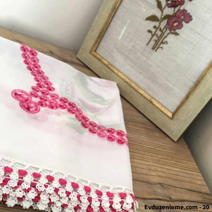 Ev tekstili ürünlerine hareketlilik ve şıklık katacak detayları istediğiniz gibi ekleyebilirsiniz. Penye iplerle hazırlanabilen birçok ürünü de tığ işlemesine uyarlayabilirsiniz. Daha ince işlemeler ile de dantelin şıklığını havlu ve yazma kenarlarına kazandırmak mümkün olacaktır. Yazma kenarına işlenen tığ oya modelleri sonucunda tülbent ve şallar elde edebilir, bu ürünleri sevdiklerinizle de paylaşabilirsiniz. Modern tığ oya örnekleri ile siz de en geleneksel işlemelerimize başlayın ve yazma modellerinizi kolay bir şekilde çok daha kullanışlı hale getirebileceğinizi görün.